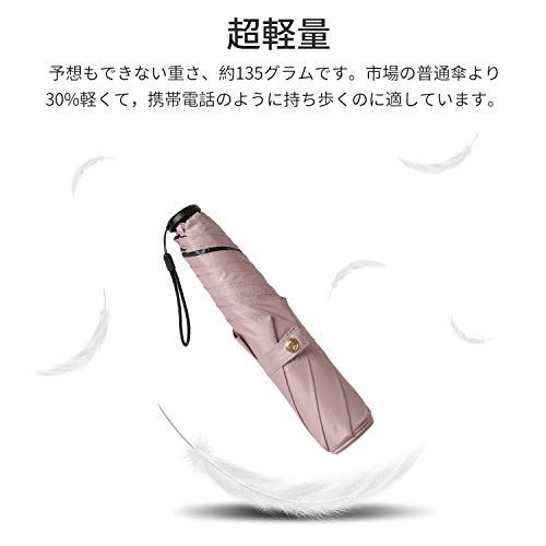 日傘 超軽量(135g) 折りたたみ傘 UVカット 遮光 遮熱 晴雨兼用 折り畳み日傘 300T 高強度カーボンファイバー 収納ポーチ付き ピンク