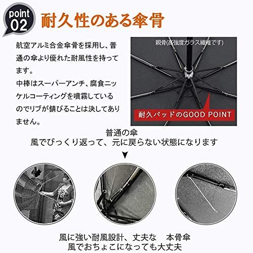 ・【2020年最新版◆超耐久・耐強風】丈夫な中棒、頑丈なアルミと壊れにくいグラスファイバーでできている親骨、色々な高強度を持っている材料を使って、優れた耐風性を持っています。